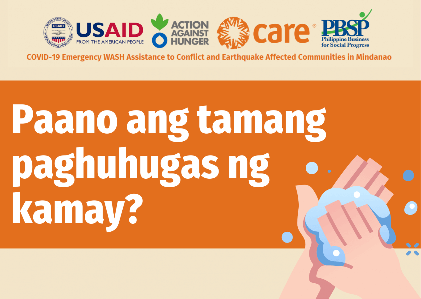 This Information, Education, and Communication (IEC) material was used during the COVID-19 Emergency WASH Assistance to Conflict and Earthquake Affected Communities in Mindanao funded by USAID.