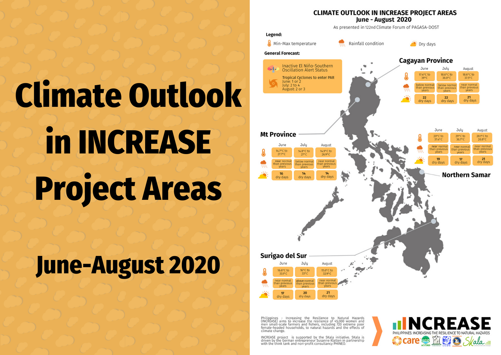 The climate outlook for June-August 2020 was based on PAGASA Climate Forum. This contains the compiled relevant climate information for INCREASE areas...